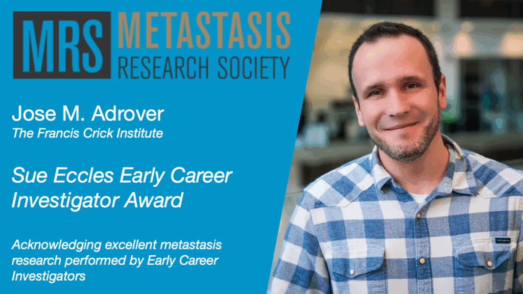 The MRS board of directors established an Early Career Investigator Award in 2016 in honor of Dr. Sue Eccles, one of our most accomplished investigators and original supporter of the MRS. This award honors excellent metastasis research performed by members of the MRS who are in their first faculty (any track) position after postdoctoral training (i.e. Assistant Professor, Instructor), before promotion to the next level (i.e. Associate Professor or equivalent), and who have established their own independent research group. Self-nomination is possible. Current members of the MRS board are not eligible.
